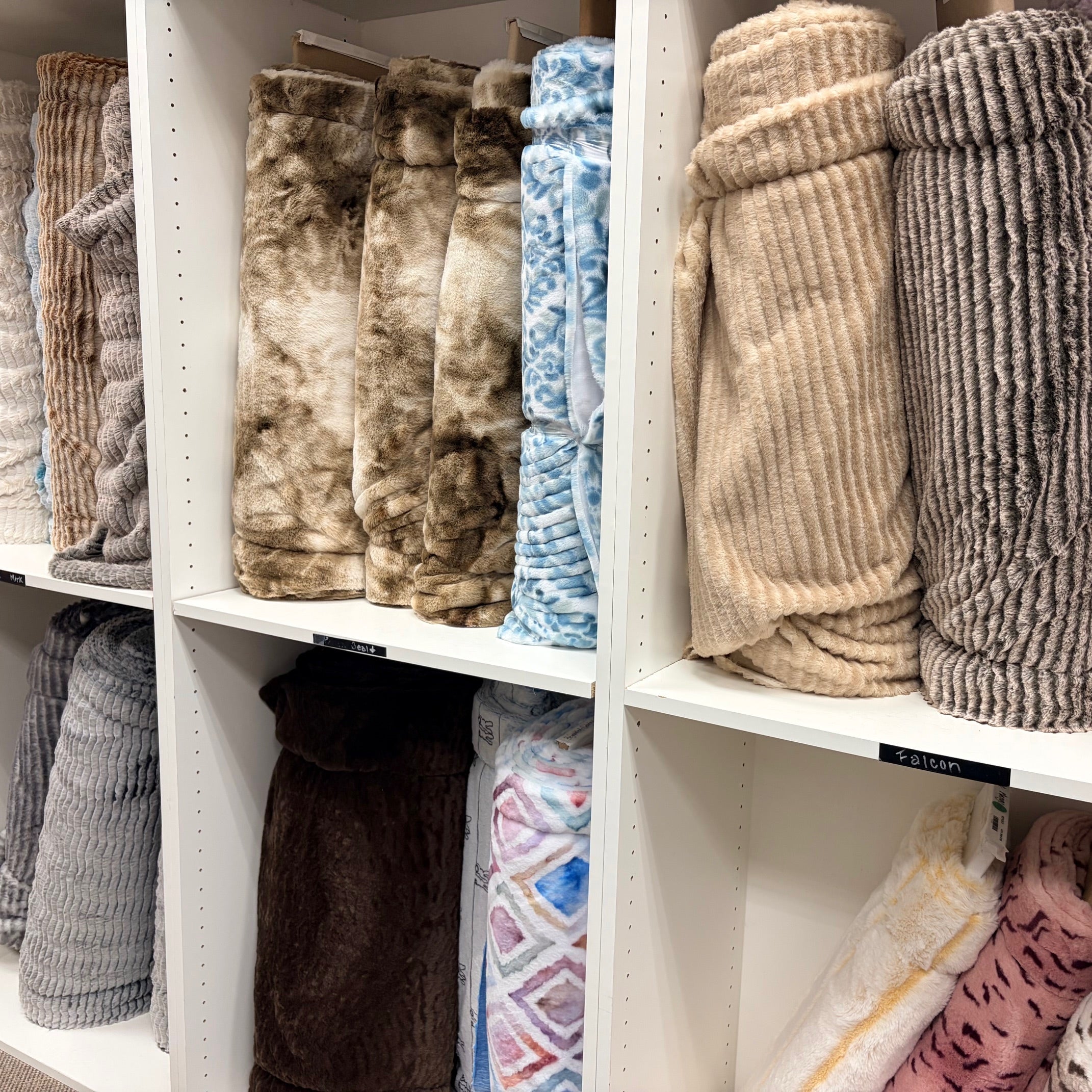 New shipment of fleece fabrics! We now have a selection of fleece materials that are perfect for tie blankets, pajamas, and outerwear. Prices start at